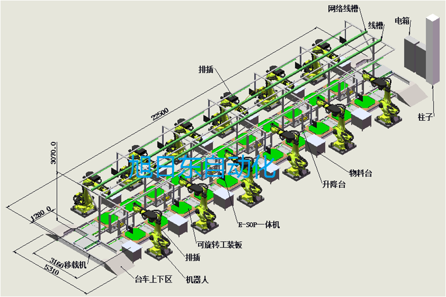 此B超設(shè)備裝配初期比較低,裝配后期又比較高,所以此方案采用了各工位分段獨(dú)立輸送且每工位均可單獨(dú)升降的方案。為保證產(chǎn)品裝配到高位時(shí)方便作業(yè)本方案采用了雙列皮帶輸送結(jié)構(gòu)以便承載面可以降至較低為置。考慮到后續(xù)升級(jí)經(jīng)量大到無人化生產(chǎn),此方案...