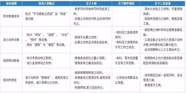 動作經(jīng)濟原則共二十二項并歸納為下列三大類:
